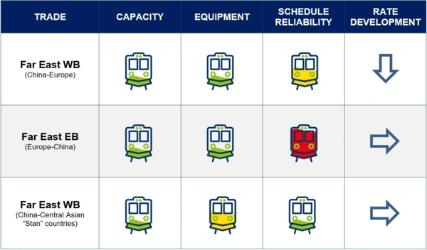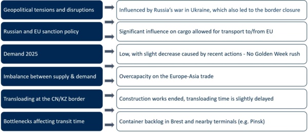 In comparison to sea freight, which is also affected by many volatile factors like blank sailings and low schedule reliability, rail freight remains competitive and is still an interesting option in regard to costs and transit time. For example, our company is currently not experiencing any significant delays on the westbound route.