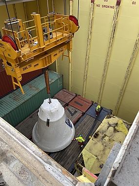 Recently cargo-partner managed the transport of the world’s largest swinging bell, strikingly named “Vox Patris”, from Poland to Brazil. The challenging project was a highlight for the company’s project cargo department, thanks to the bell’s impressive dimensions: Weighing 55 tons and standing four meters tall, it presented a complex yet exciting transport challenge. Read on to discover more about the preparations – and how we measured it in elephants and giraffes…
